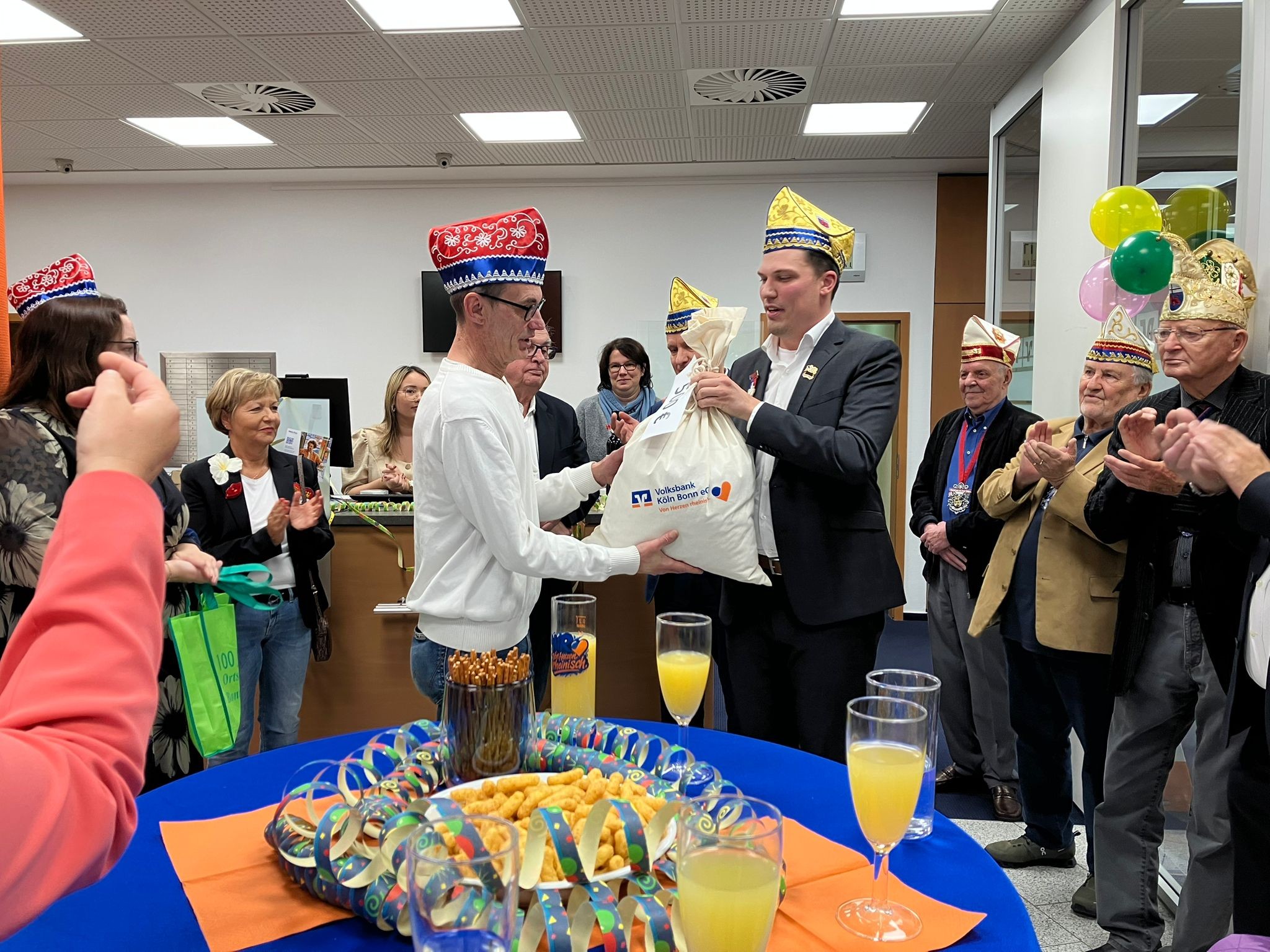 Am Donnerstag, dem 13. November 2025 luden der Leiter der Endenicher Volksbank Herr Markus Simon und der Vorsitzende des Ortsausschusses Herr Stefan Söntgen zum traditionellen Prinzenempfang ins Foyer der Volksbankfiliale ein.