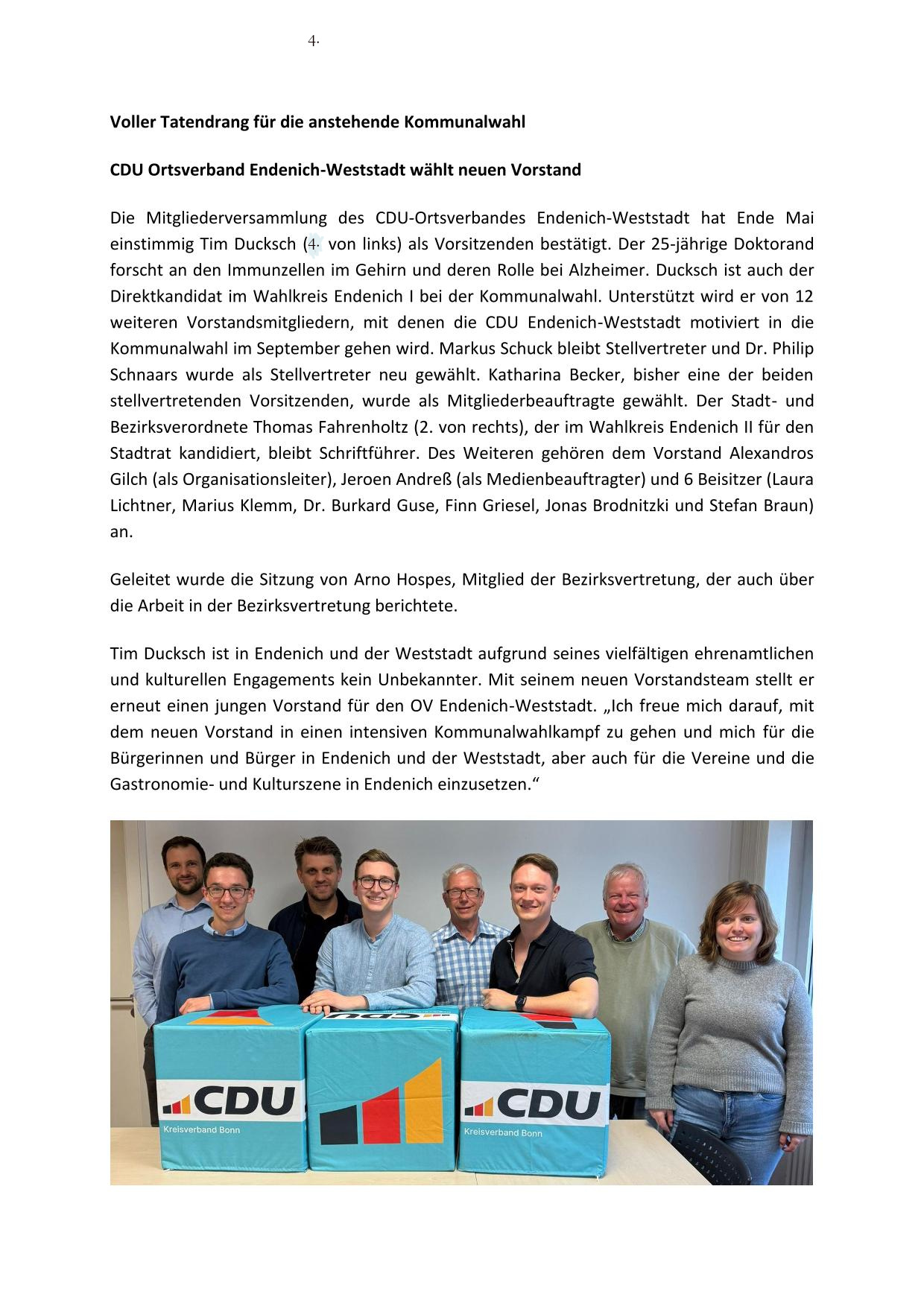 Renate Torno zur Ehrenvorsitzenden des Ortsausschusses Bonn-Endenich e.V. gewählt