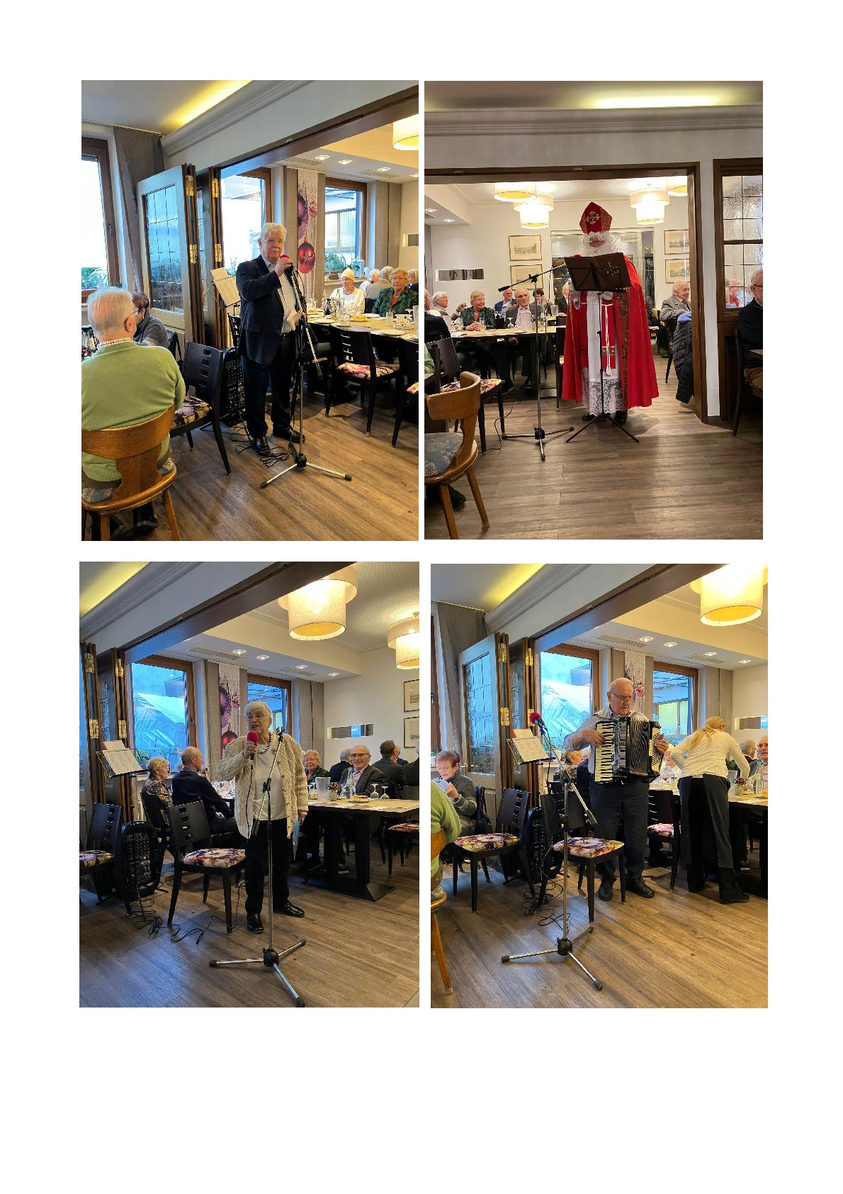 Nach Kaffee und Kuchen trug Frau Dagmar Bofinger ausdrucksstark verschiedene weihnachtliche Gedichte vor, im Wechsel spielte Hans Nolden auf dem Akkordeon Weihnachtslieder und die Gäste sangen die bekannten Lieder fröhlich mit.