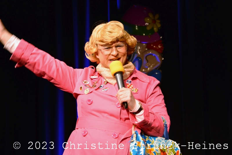 Das gleiche galt für Annemie Krawschak, sie gilt dank ihres auffällig pinken Mantels als der Flamingo des Karnevals. Und verkörpert die alleinstehende, junge Dame aus dem Kölner Umland, die es nicht verstehen kann, dass die Männer noch immer nicht hinter ihr her sind. In ihrer Rede punktete sie mit Kuriosem aus dem Alltag, mit Schlagfertigkeit und Spontanität.