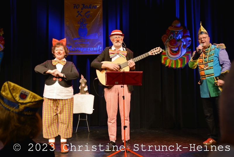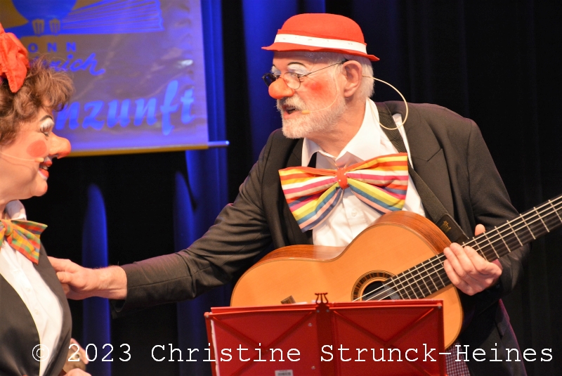 Nun also zum letzten Mal in Endenich .Und die beiden gaben noch einmal alles. In einer Rückschau auf 18 Jahre Bühnentätigkeit präsentierten sie Bekanntes und weniger Bekanntes, wie die Elferratt, et Leedcher vom Papp und vieles andere. Den tosenden Beifall mit standing ovations konnten sie nur mit einer Zugabe stoppen. Die durften sich die Zuschauer wünschen. Nicht ganz einfach, es gibt so vieles, was man so gerne nochmal gehört hätte. So wurden unter anderem Rufe laut nach dem „Jotschingbon“. Das Rennen in der Zuschauergunst aber machte das Lied vom Usambaraveilchen. Damit gelang ihnen einst der Durchbruch im Kölner Karneval . Das kleine Liedchen über ein kleines Blümchen, das der nachlässige Nachbar während des Urlaubs verdorren lässt, ist bis heute ein Publikumsliebling geblieben. Und bildete damit den würdigen Rahmen für den Abschied eines liebenswerten Duos, das allen Karnevalisten unvergesslich bleiben wird.