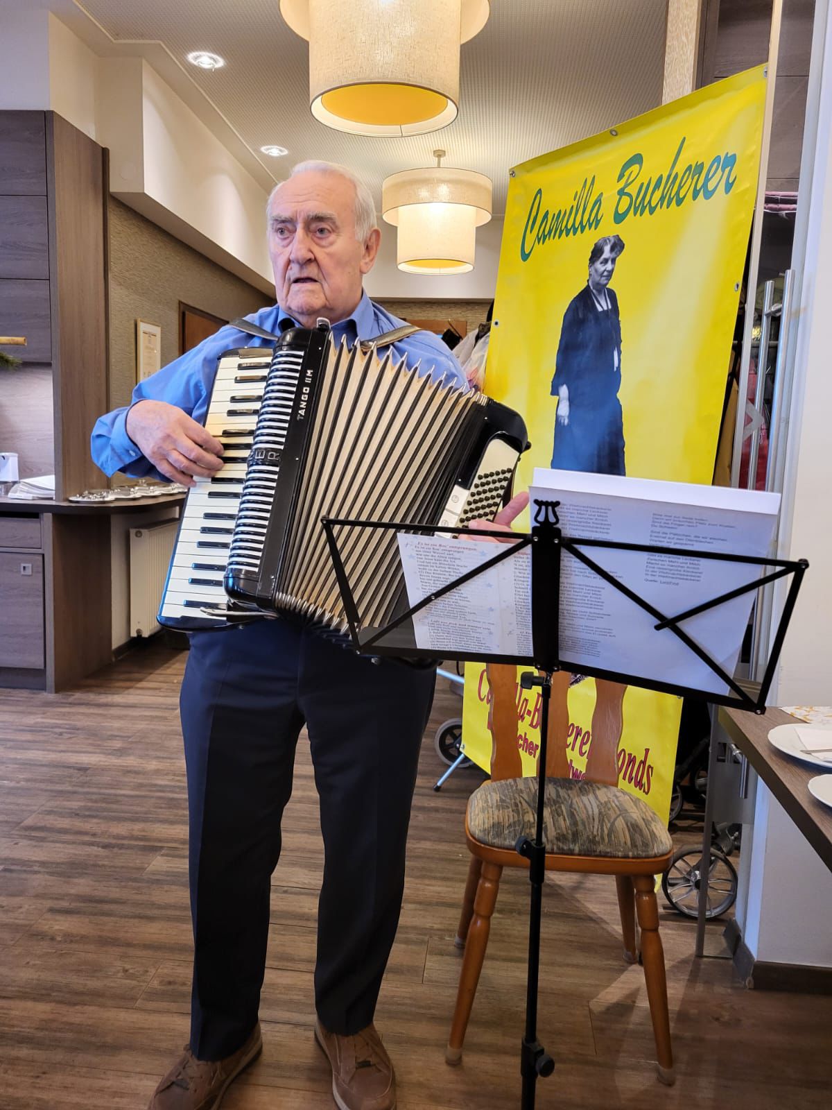 Nach Kaffee mit Stollen und Plätzchen spielte Hans Nolden auf dem Akkordeon Weihnachtslieder und die Gäste sangen die bekannten Lieder fröhlich mit.