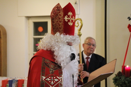 Zum Abschluss kam dann der Nikolaus, der mit dem Gedicht „Bethlehem“ alle Gäste nachdenklich stimmte und für jeden Gast eine Tüte mit einem Christstollen und einem Piccolo mitgebracht hatte. Die Ortsausschuss-vorsitzende Renate Torno hatte noch die kleine Broschüre anlässlich der -100 Jahr-Feier des OAS - in die Tüte gesteckt und wünschte allen Anwesenden viel Spaß beim Lesen.